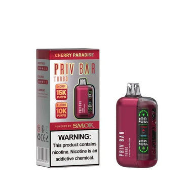 Delight in the sweet and juicy taste of Cherry Paradise – Priv Bar Turbo 15k Disposable. Offering up to 15,000 puffs, this disposable vape blends ripe cherries with a smooth finish for a luscious, all-day vaping experience. Perfect for vapers who crave a balanced cherry flavor with long-lasting satisfaction.