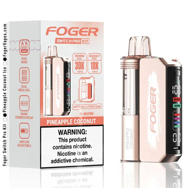 Pineapple Coconut – Foger Switch Pro 30K Disposable Kit delivers a smooth tropical blend of juicy pineapple and creamy coconut, creating a refreshing island-inspired vape. Engineered with mesh coil technology, the Foger Switch Pro 30K ensures bold flavor and smooth vapor in every puff. With its dual-mode system, you can enjoy up to 30,000 puffs in Regular Mode or switch to Turbo Mode for boosted flavor intensity and vapor output.