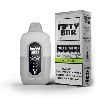 Frozen Apple Fifty Bar 20K Disposable Vape delivers a crisp apple flavor with a cool icy finish for a refreshing, smooth all-day vape. This flavor is a great fit for adult users who enjoy clean fruit profiles with a chilled exhale, combining sweet-tart apple notes with a cooling finish that stays bright and satisfying.