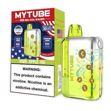 Sour Apple Ice – MyTube Ultra 60K Disposable Vape delivers a bold kick of tart green apple flavor layered with a refreshing icy menthol finish. Built for maximum longevity, the MyTube Ultra 60K Disposable Vape offers up to 60,000 puffs in Regular Mode and up to 40,000 puffs in Boost Mode for customizable performance.
