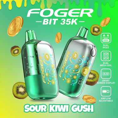 Turn up the tropical tang with Sour Kiwi Gush - Foger Bit 35k Disposable. This flavor blends juicy, bright kiwi with a punchy sour candy twist to create a sharp, sweet-and-tart vape that pops on every pull. Built into the high-capacity Foger Bit 35k device, it delivers bold flavor, smooth vapor, and long-lasting performance in a simple, grab-and-go disposable—no refilling, no coil changes, no settings to fuss with.